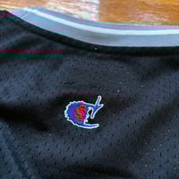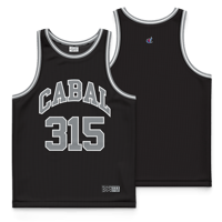 160gr polyester basketball jersey with twill appliqué lettering, woven 30th Anniversary tag and embroidered Cabal "C" logo on back.